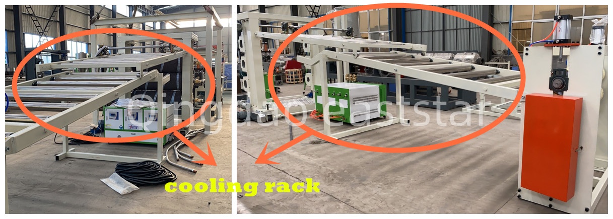 우리는ABS 다층 공압출 시트 생산 라인완전한 공급 및 보조 시스템을 갖추고 있습니다. SJ-130 압출기에는 E-1000 스테인리스 스틸 스크류 피더가 장착되어 있으며, SJ-70 압출기에는 E-300 진공 피더가 장착되어 있어 다양한 원료를 정밀하게 공급할 수 있습니다. 냉각 지지대에는 8m 길이의 스테인레스 스틸 롤러와 3개의 조절 가능한 엣지 커터가 장착되어 시트와 깔끔한 엣지의 충분한 냉각을 보장합니다. 절단기는 한국오토닉스 엔코더가 장착된 기계식 전기절단기를 사용하여 자동으로 고정길이 절단이 가능합니다.