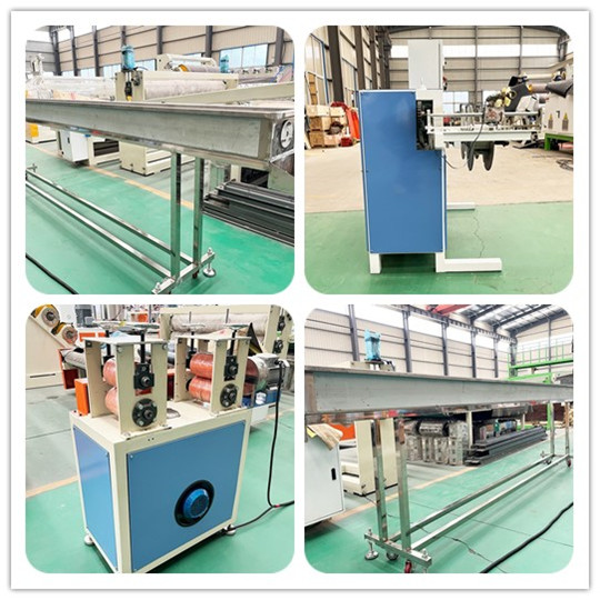 PE 백 엣지 스트립 압출 기계에는 단일 스크류 압축기 - 기계 헤드 몰드 - 진공 성형 창고 - 견인 트랙터 - 권선이 포함됩니다.