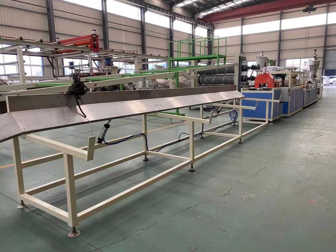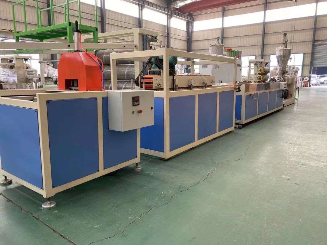 프로파일 생산 라인 프로파일 생산 라인은 SJSZ-65/132 시리즈 원추형 이축 압출기, 스테인레스 스틸 진공 성형 플랫폼, 크롤러 트랙터, 자동 절단 통합 기계 및 뒤집기 언로드 랙을 사용합니다. 성형 플랫폼에는 4차원으로 조정 가능한 고압 진공 펌프와 워터 펌프가 장착되어 있습니다. 트랙터는 공압식으로 고정되어 있습니다. 자동 고정 길이 절단기는 이동 스위치를 사용하여 고정 길이로 절단합니다. 스태킹 랙은 길이가 6m이고 스테인리스 스틸로 제작되었으며 공압식으로 뒤집혀 있습니다.
