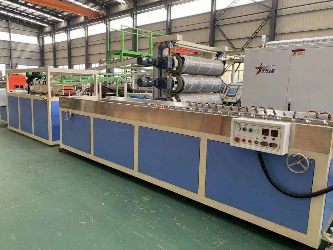 프로파일 생산 라인은 SJSZ-65/132 시리즈 원추형 이축 압출기, 스테인레스 스틸 진공 성형 플랫폼, 크롤러 트랙터, 자동 절단 통합 기계 및 뒤집기 언로드 랙을 사용합니다. 성형 플랫폼에는 4차원으로 조정 가능한 고압 진공 펌프와 워터 펌프가 장착되어 있습니다. 트랙터는 공압식으로 고정되어 있습니다. 자동 고정 길이 절단기는 이동 스위치를 사용하여 고정 길이로 절단합니다. 스태킹 랙은 길이가 6m이고 스테인리스 스틸로 제작되었으며 공압식으로 뒤집혀 있습니다.