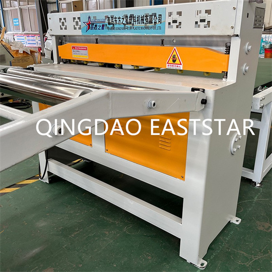 고무 롤러 견인 기계, 절단기 및 운반 장치. 조명판의 폭은 1220이고, 두께는 1~2mm이다. 그것