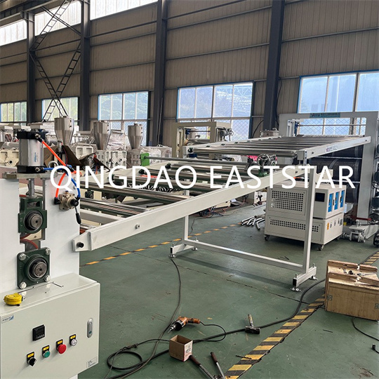 PVC 캐노피 패널 장비는 주로 이축 압출기, 플레이트 몰드, 3롤러 캘린더, 냉각 브래킷, 고무 롤러 견인 기계, 절단기 및 운반 장치로 구성됩니다.