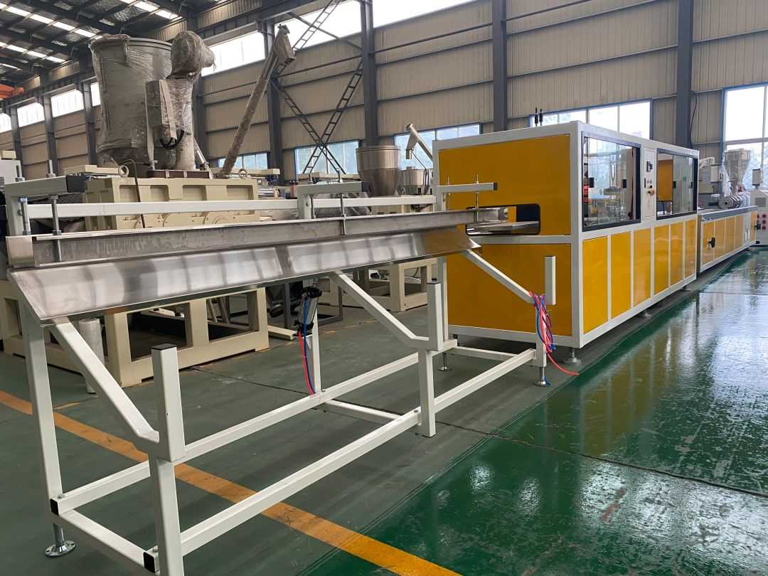 PVC 플라스틱 바닥 생산 라인은 목재-플라스틱 복합 재료로 만들어진 바닥입니다. 목재와 동일한 가공 특성을 가지고 있습니다. 일반 도구를 사용하여 톱질하고, 뚫고, 못을 박을 수 있습니다. 매우 편리하며 일반 목재처럼 사용할 수 있습니다. 동시에 나무의 나무적인 느낌과 플라스틱의 방수 및 방청 특성을 가지고 있어 내구성이 뛰어난 옥외 방수 및 방청 건축자재입니다. PVC 플라스틱 바닥 생산 라인 기계는 전체 생산 라인의 주요 부분을 구성하는 혼합 장치, 이축 압출기, 진공 성형 테이블, 트랙터, 절단기 및 배출 랙으로 구성됩니다.
