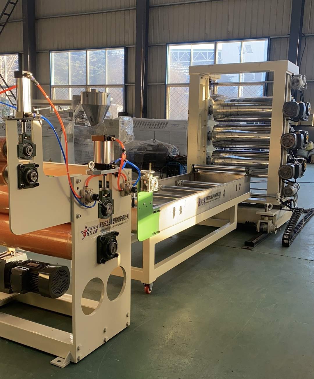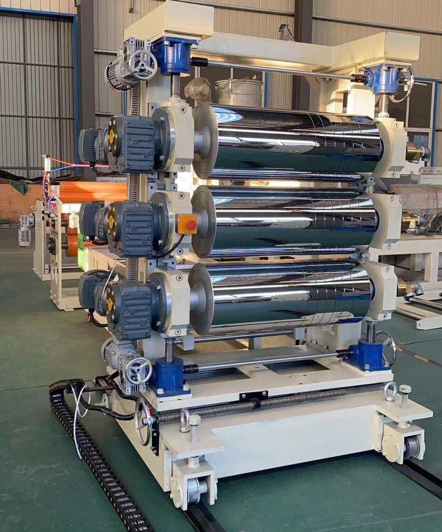 PVC 투명 소프트 도어 커튼 생산 라인: 폭 200~600mm, 두께 0.8~3mm의 PVC 투명 플라스틱 시트를 생산할 수 있습니다. 장비에는 SJ90 또는 SJ-120 단일 스크류 압출기, 조정 가능한 T자형 유연한 다이, 수직 또는 45도 경사 3롤러 캘린더, 3-in-1 수온 컨트롤러, 폭 조정 가능한 트리밍 나이프가 장착된 스테인레스 스틸 냉각 브래킷, 고무 롤러 견인 기계 및 이중 위치 공기 팽창 샤프트 와인더가 포함됩니다. 생산된 시트는 표면이 광택이 있고 투명성이 높으며 부드러우며 균열이 없고 냄새가 없으며 기포가 없으며 유연성, 내한성, 내마모성, 내산알칼리성, 내식성이 우수합니다.