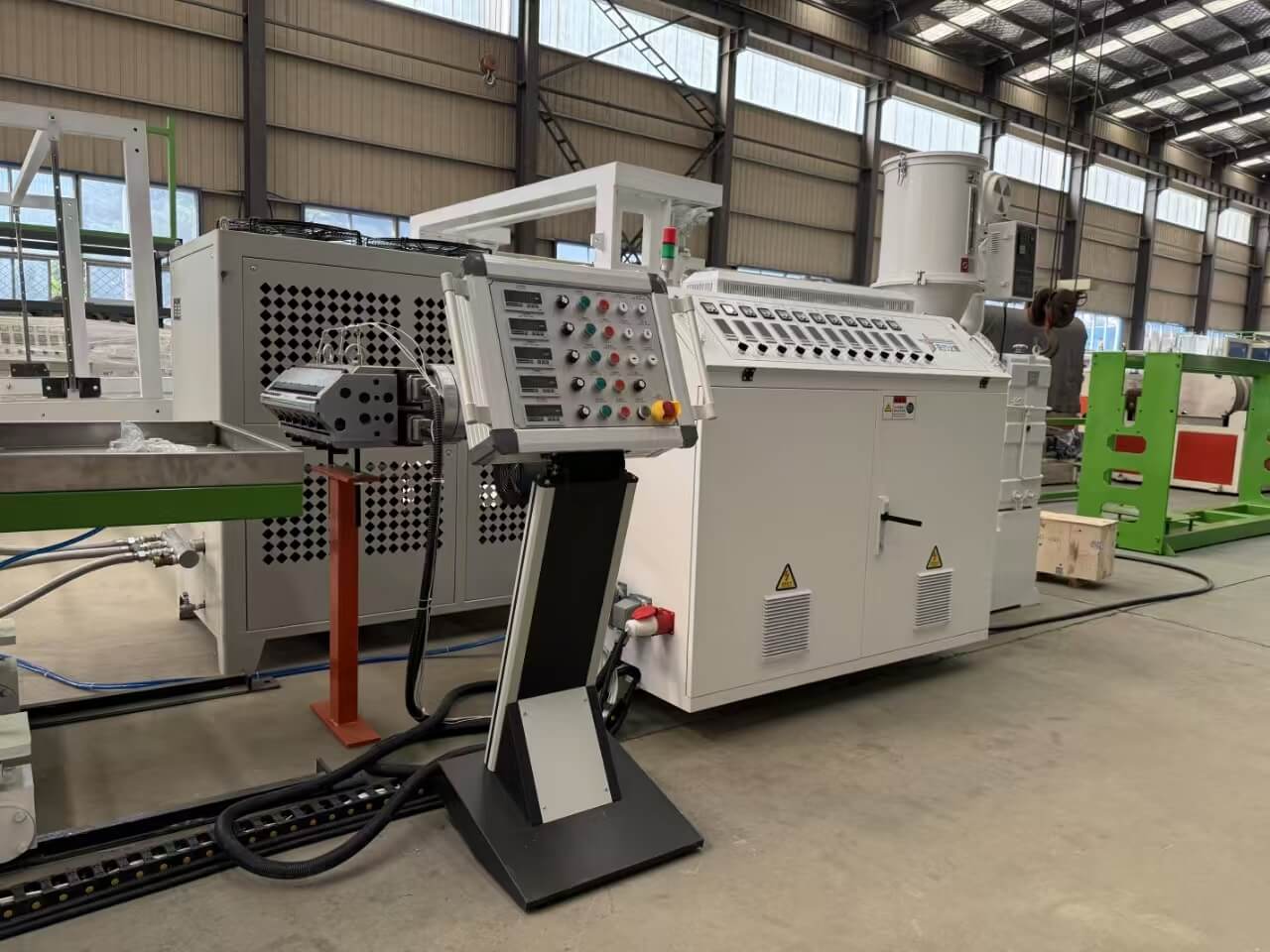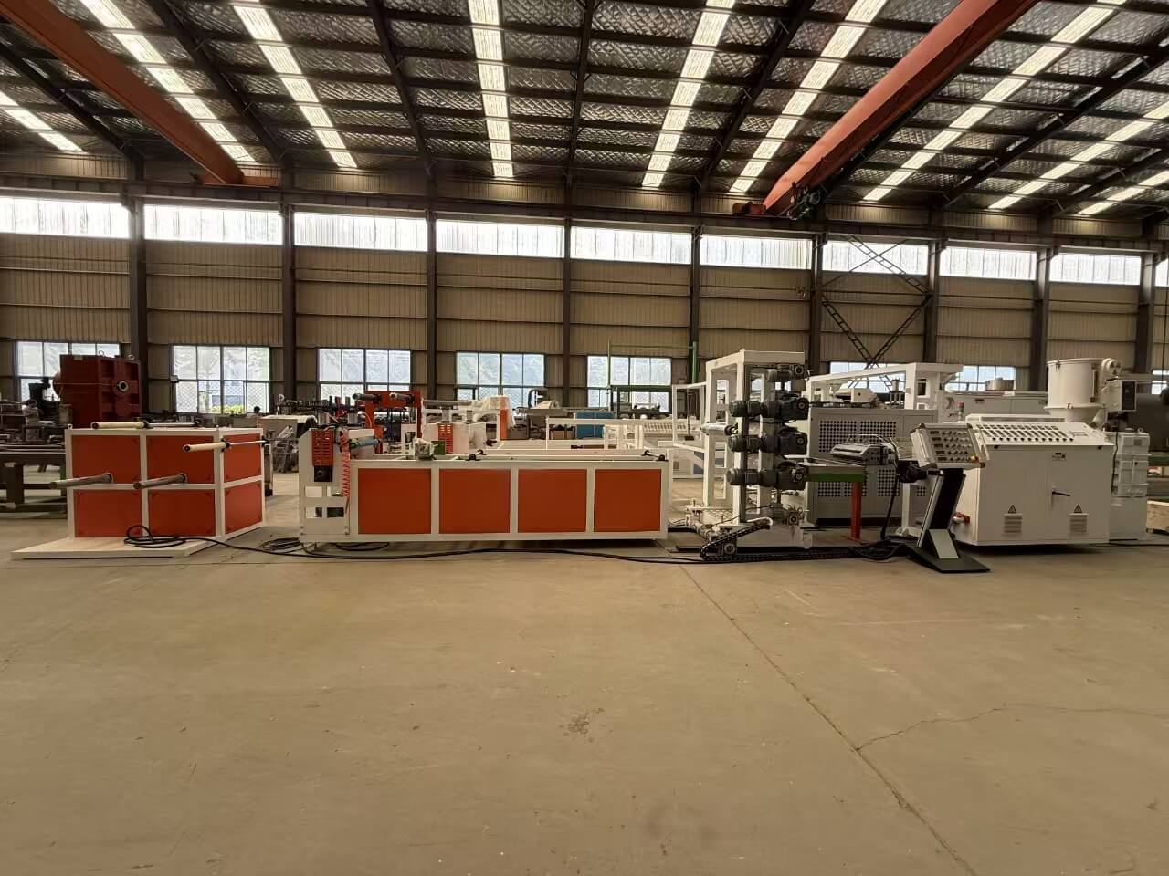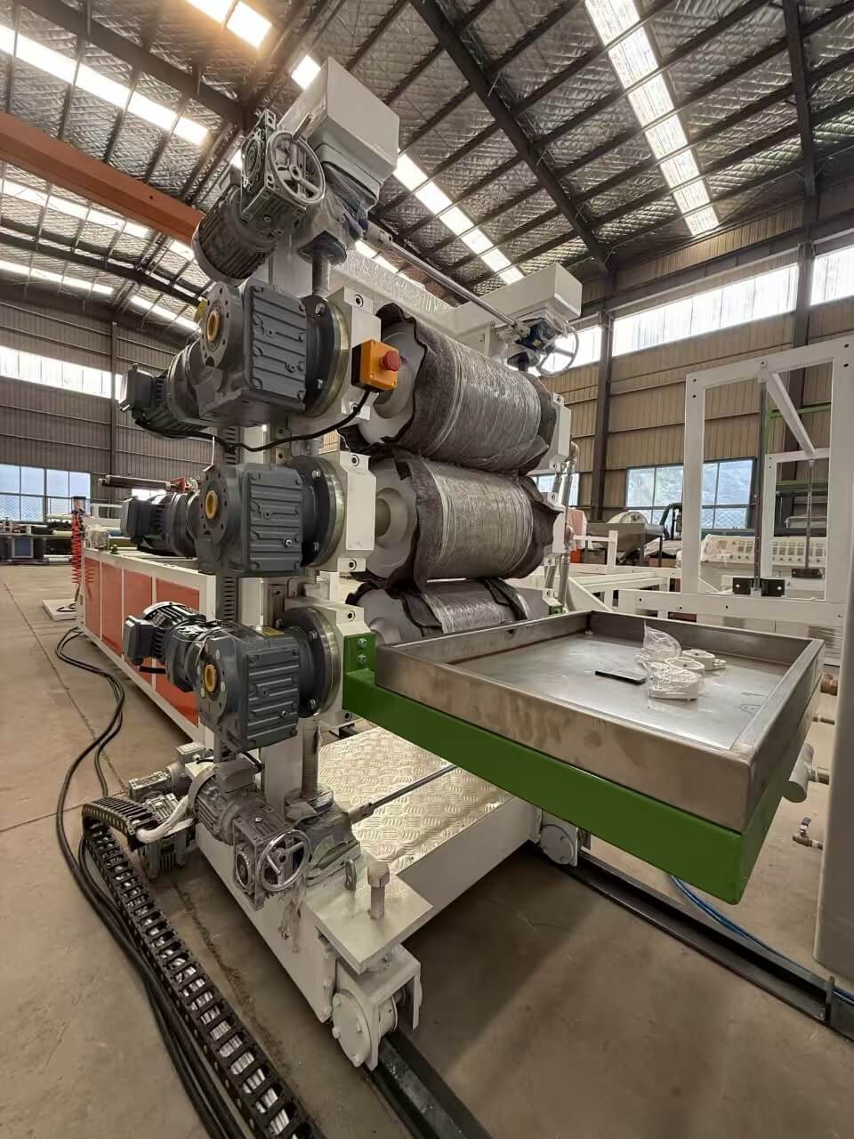 TPU/PE/PP/PS-300 와이드 시트 압출 라인은 TPU/PE/PP/PS 펠릿 또는 분쇄된 혼합물을 처리하는 데 적합합니다.